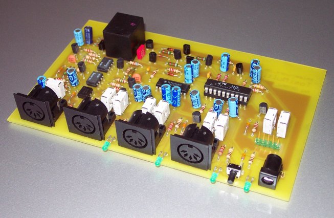 16VDC benötigt. Ein DC/DC-Wandler versorgt intern den potenzialgetrennten Teil auf der PC - Seite. Für die Inbetriebnahme des Bausatzes sind keine speziellen Messmittel erforderlich. Exemplarstreuungen der Optokoppler machen eine Selektion zweier Widerstände erforderlich. Diese kommen beim Bausatz selbstverständlich bereits vorselektiert zur Auslieferung. Technische Daten * 3 potenzialgetrennte Kanäle: Audio Senden, Audio Empfangen und PTT * max. Eingangsspannung: 5V (14Vss) * * Eingangswiderstand: ca. 10 kOhm * max. Ausgangsspannung: 1V (2,8Vss) * Ausgangsspannung für jeden Transceiver einstellbar von 0...max. Wert * Ausgangswiderstand: ca. 500 Ohm * Verstärkung: Für Senden und Empfangen getrennt einstellbar von 0...2,5. * Frequenzbereich: 10Hz - 20kHz * Kapazität zwischen den Gruppen PC' und Transceiver': ca. 40 pF * Isolationswiderstand zwischen den Gruppen: > 10 MOhm * PTT-Steuerung über eingebaute VOX oder ext. Schaltsignal aus dem PC * Spannungsversorgung: 10